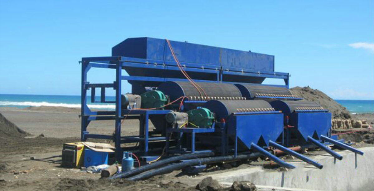 極低品位戈壁灘沙鐵礦磁選生產(chǎn)線是我公司自行研制的具有自主知識產(chǎn)權(quán)的從極低品位戈壁灘沙漠中提取鐵精粉的新產(chǎn)品,擁有發(fā)明專利兩項,實用新型專利兩項,該生產(chǎn)線采用先篩分后干選工藝,拋去大量尾礦,再經(jīng)過預(yù)選大大提高原礦品位,使球磨機“吃粗糧”變?yōu)椤俺跃Z”,大大降低了運行成本,保證精選后最終鐵精粉品位達(dá)到64%以上,而且設(shè)備投資少,節(jié)能效果顯著。